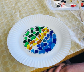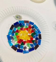 Children's Librarians Debbie Baker and Rocio Carrera hosted two workshops centered around glass. Participants created painted or collaged cabachon (a domed glass stone) pendants and keychains. We also used colorful mosaic glass pieces to create sparkling suncatchers. (Our only regret is that we didn't get a chance to see these beautiful suncatchers hanging in your sunny window!)